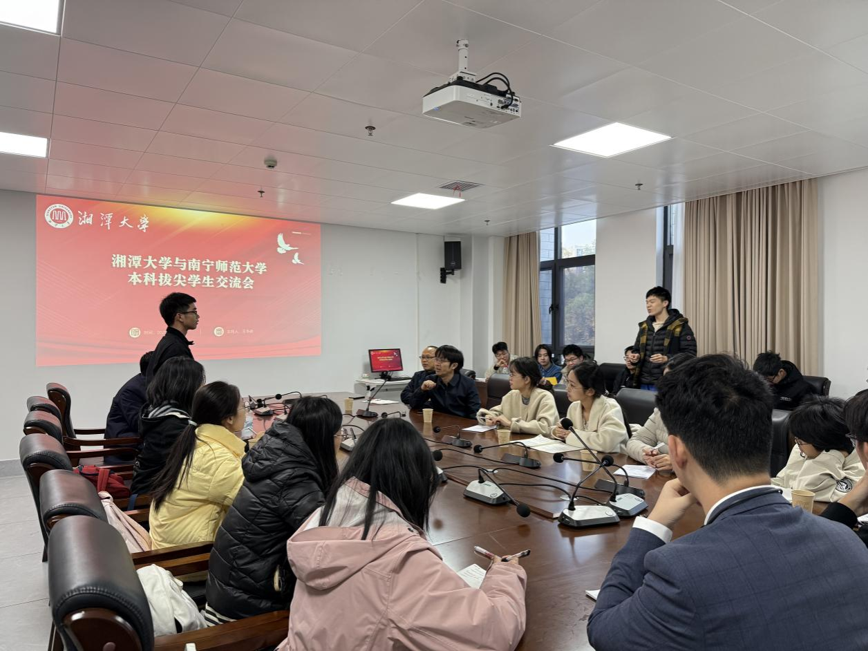 为汲取兄弟院校在数学类基地班人才培养方面的宝贵经验,拓宽人才培养视野,12 月 3 日,william威廉中文官网副经理刘利斌、党委副书记王卫彬、经理助理杨剑锋等一行 6 人,带领 24 级基地班 19 名同学,前往湘潭大学数学与计算科学公司开展了一场富有成效的交流活动。双方围绕基地班班级建设、人才成长路径等核心议题展开了深入而细致的探讨。
