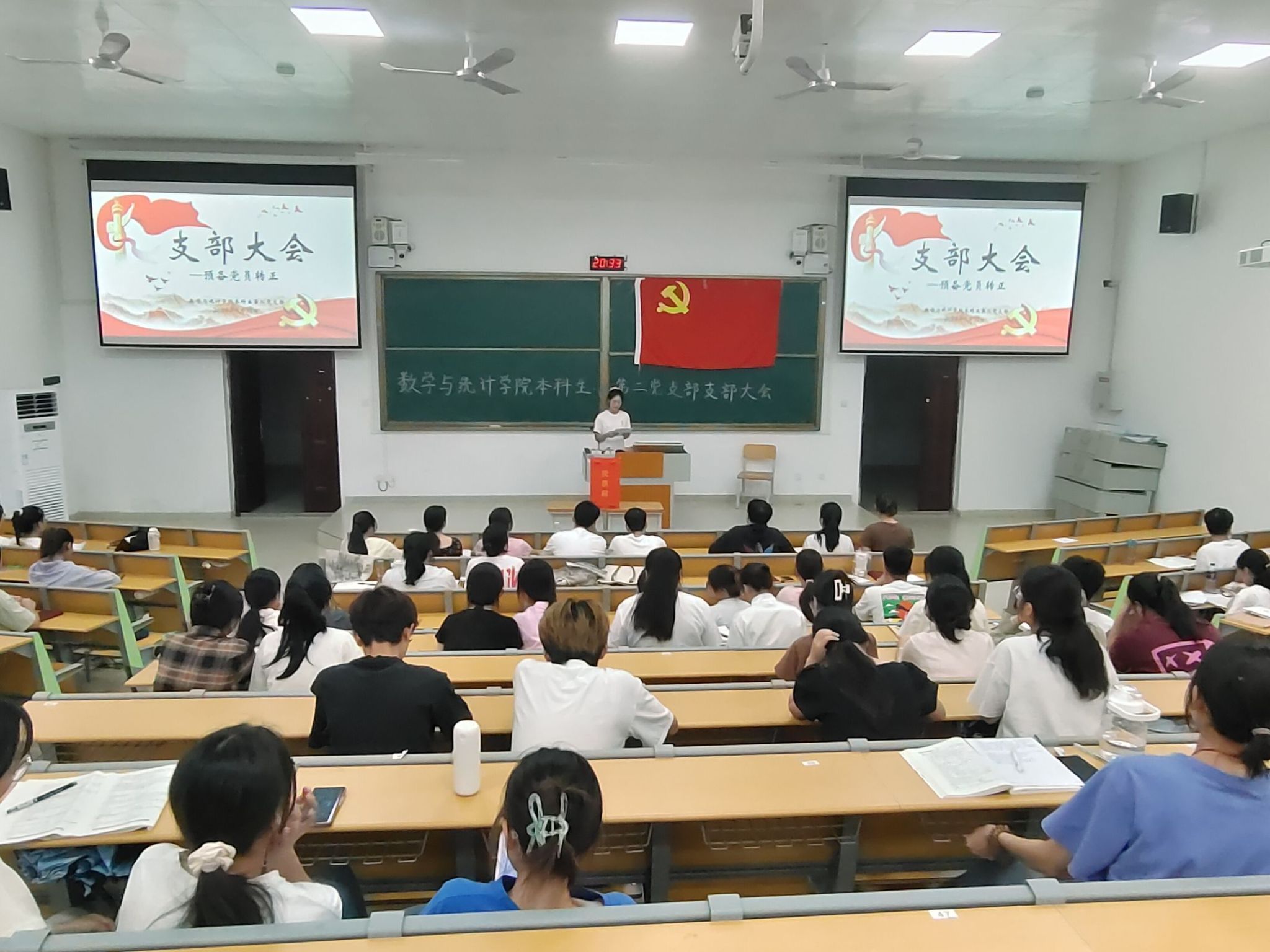 5月31日晚,william威廉中文官网本科生第二党支部在实验楼2-B108教室召开预备党员转正大会。会议由支部书记利佳愉同志主持,大会讨论表决余海燕等6名预备党员转正事宜,支部全体成员参会。
