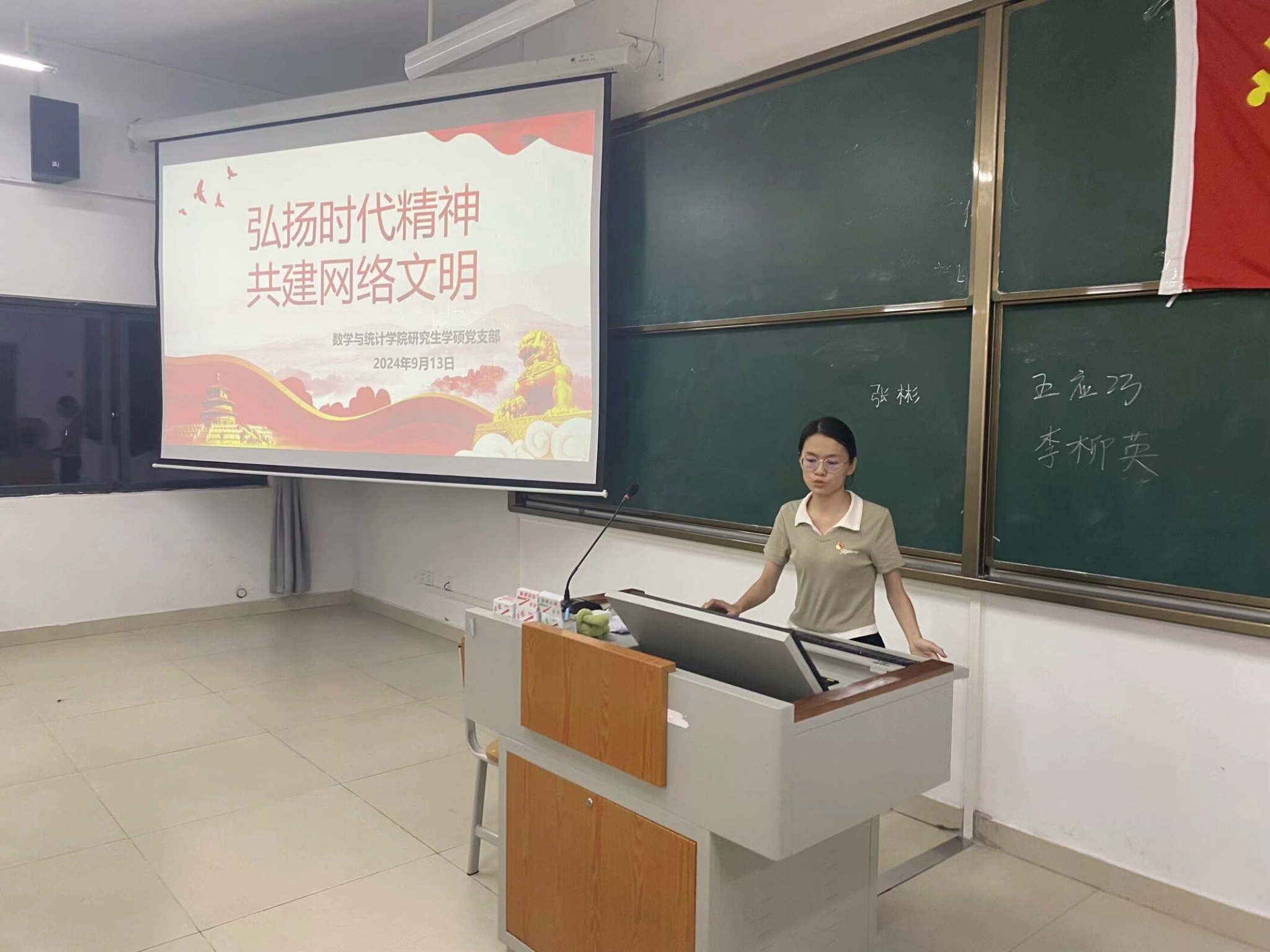 为进一步加强党员在网络文明建设中的榜样引领作用,9月13日晚,william威廉中文官网研究生学硕党支部在2号实验楼-A104室组织开展“弘扬时代精神,共建网络文明”主题党日活动。此次党课由支部书记罗海燕同志主持,研究生学硕党支部全体成员参加。