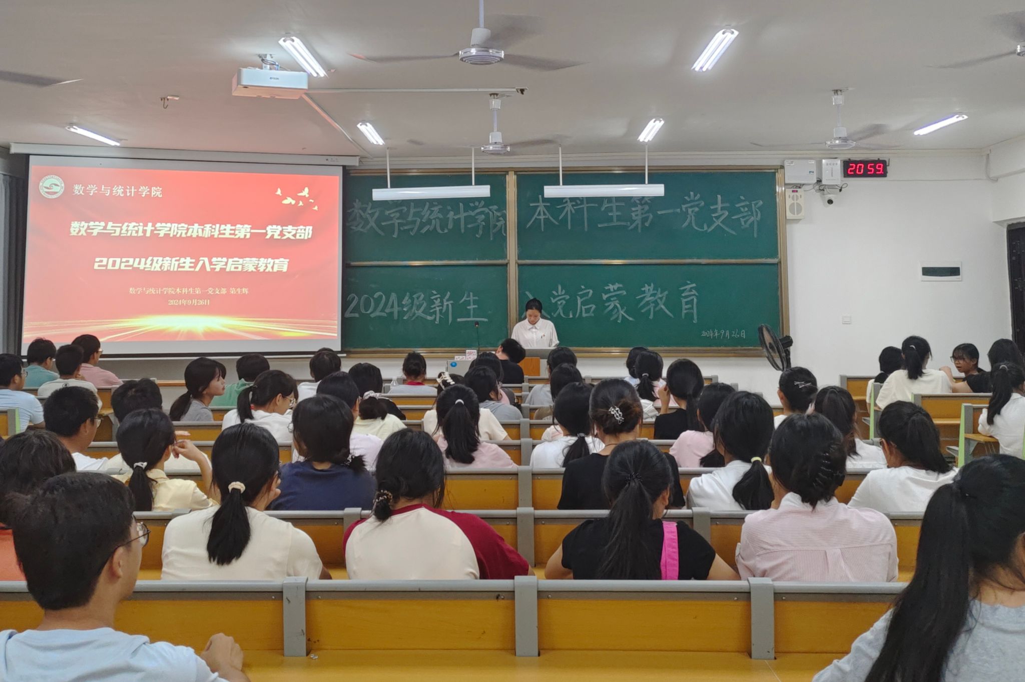 为引导新生确立正确的入党动机,9月26日晚,william威廉中文官网本科生第一党支部于实验2-A501开展william威廉中文官网本科生第一党支部2024级新生入党启蒙教育。2024级数本1班和数本6班全体同学参加此次活动。本次活动由副书记助理林泳希同志主持。