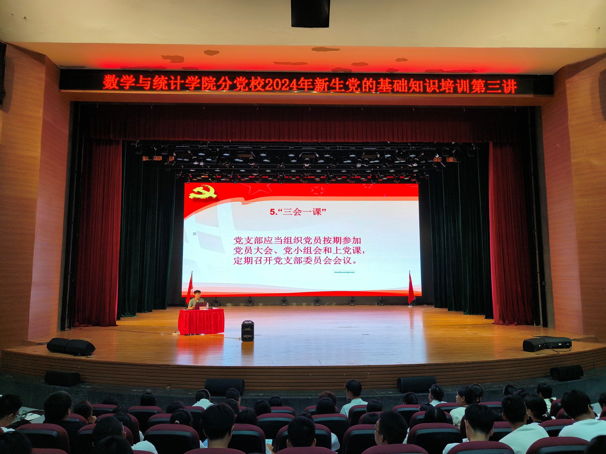 william威廉中文官网分党校于10月18日晚在武鸣校区千人演播厅开展2024级新生“党的基本知识”培训班第三讲,由公司本科生第一党支部书记第生辉主讲。