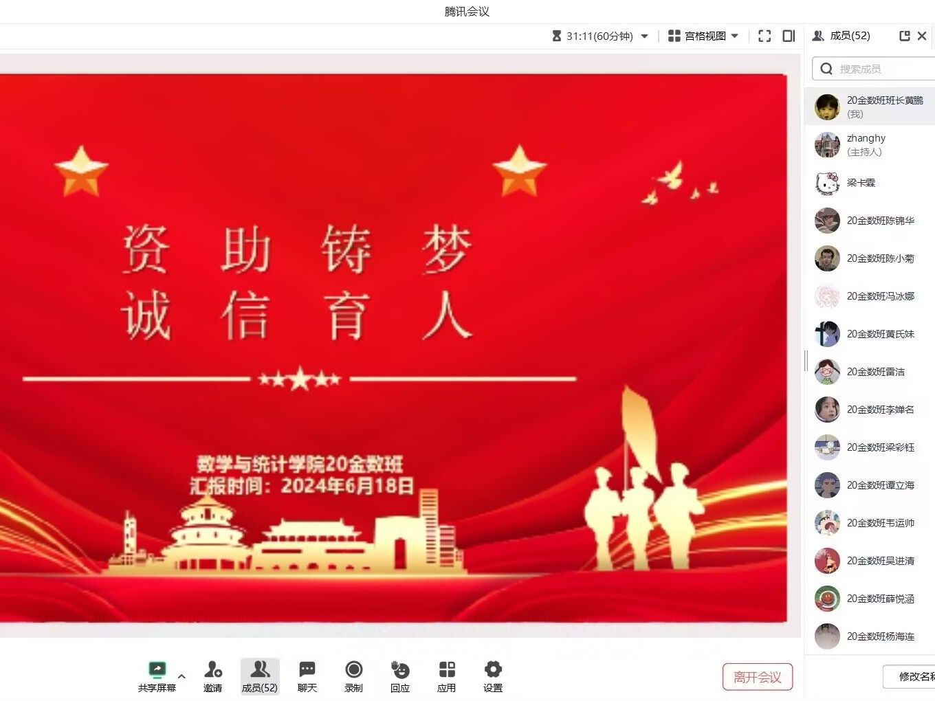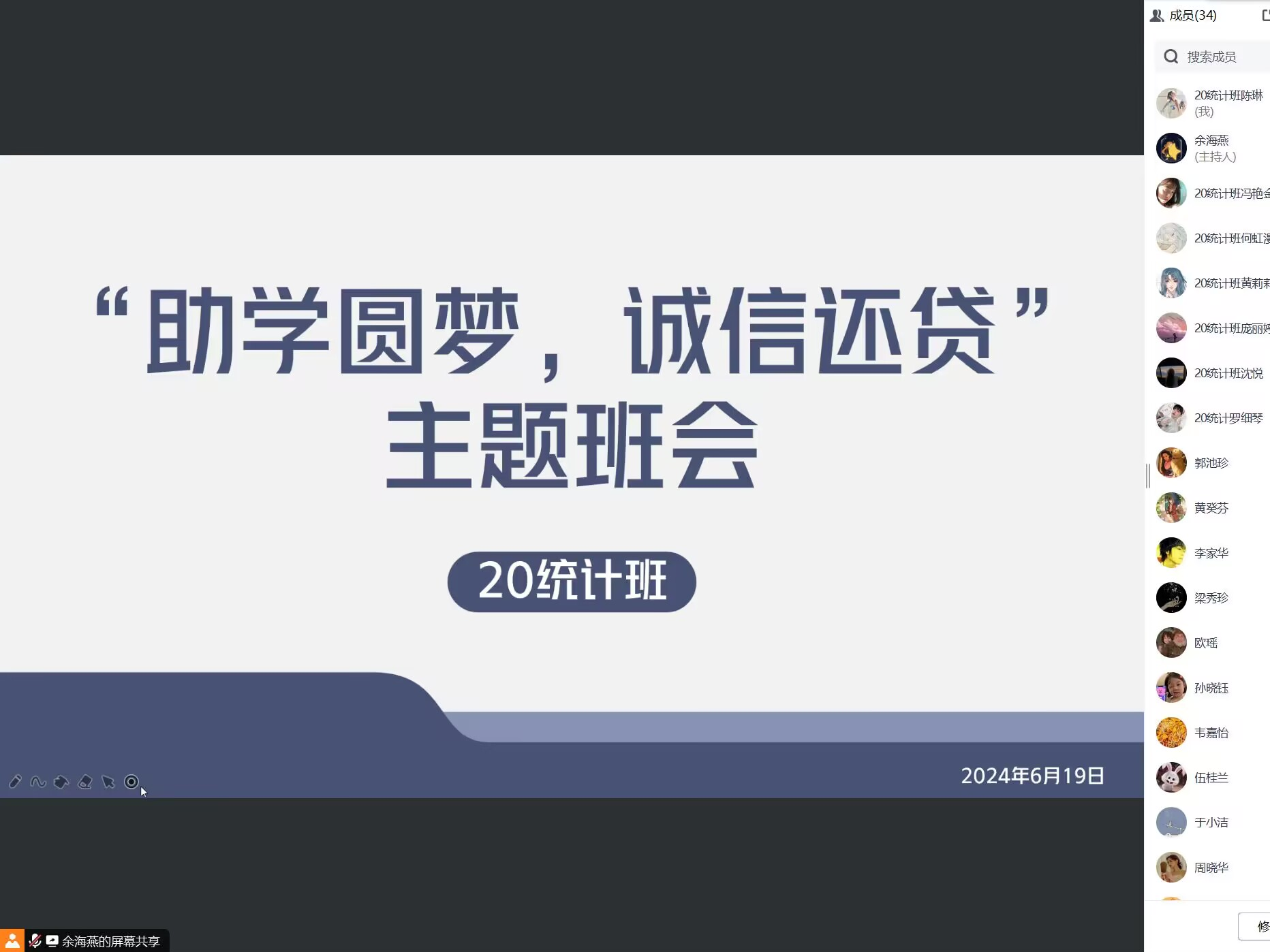 为落实落细2024届助学贷款毕业生的毕业确认工作,提升受助员工的诚信意识及责任担当,william威廉中文官网于6月15日至6月21日组织2024届毕业班开展了以“助学圆梦,诚信还贷”为主题的班会活动。