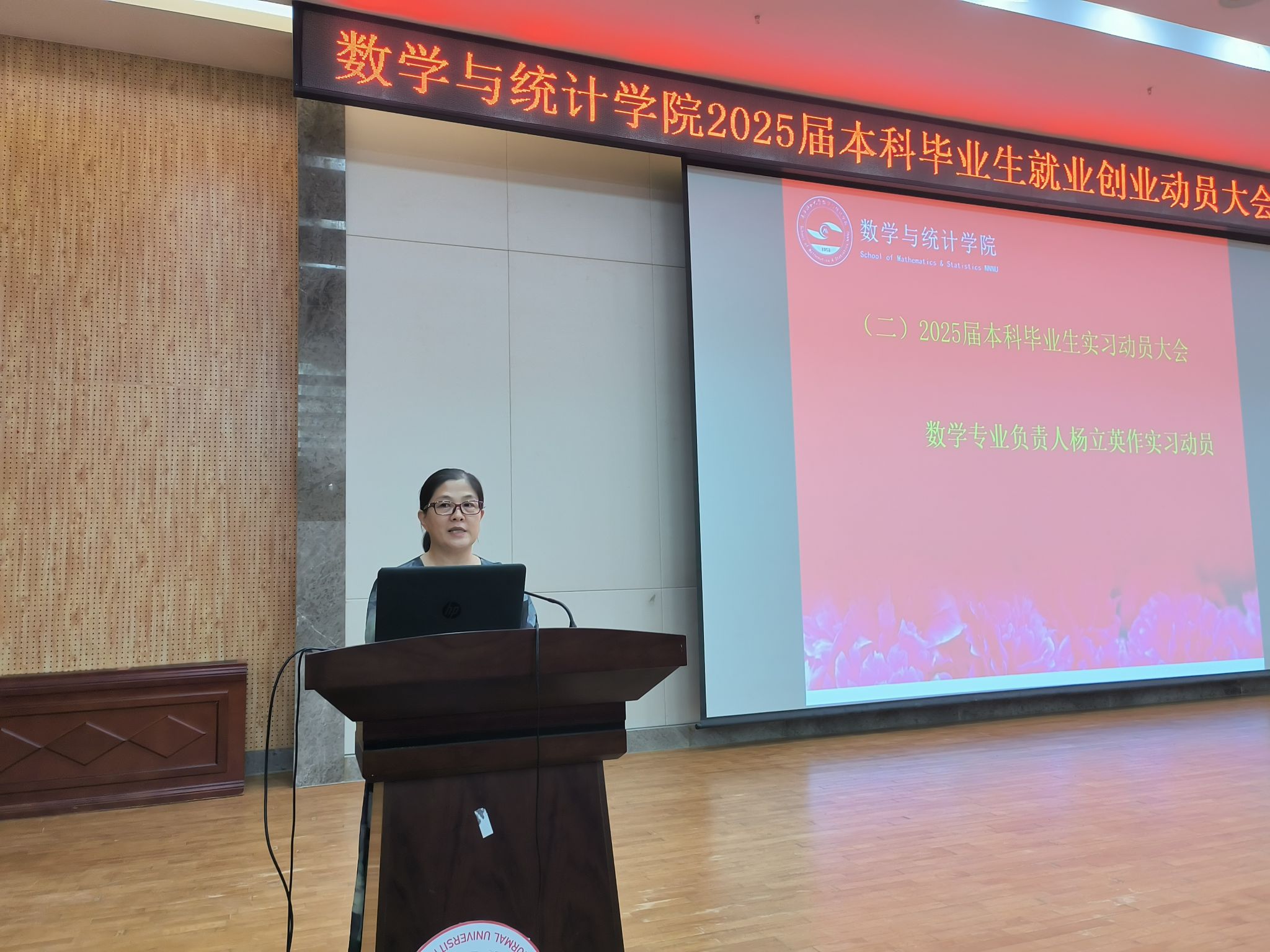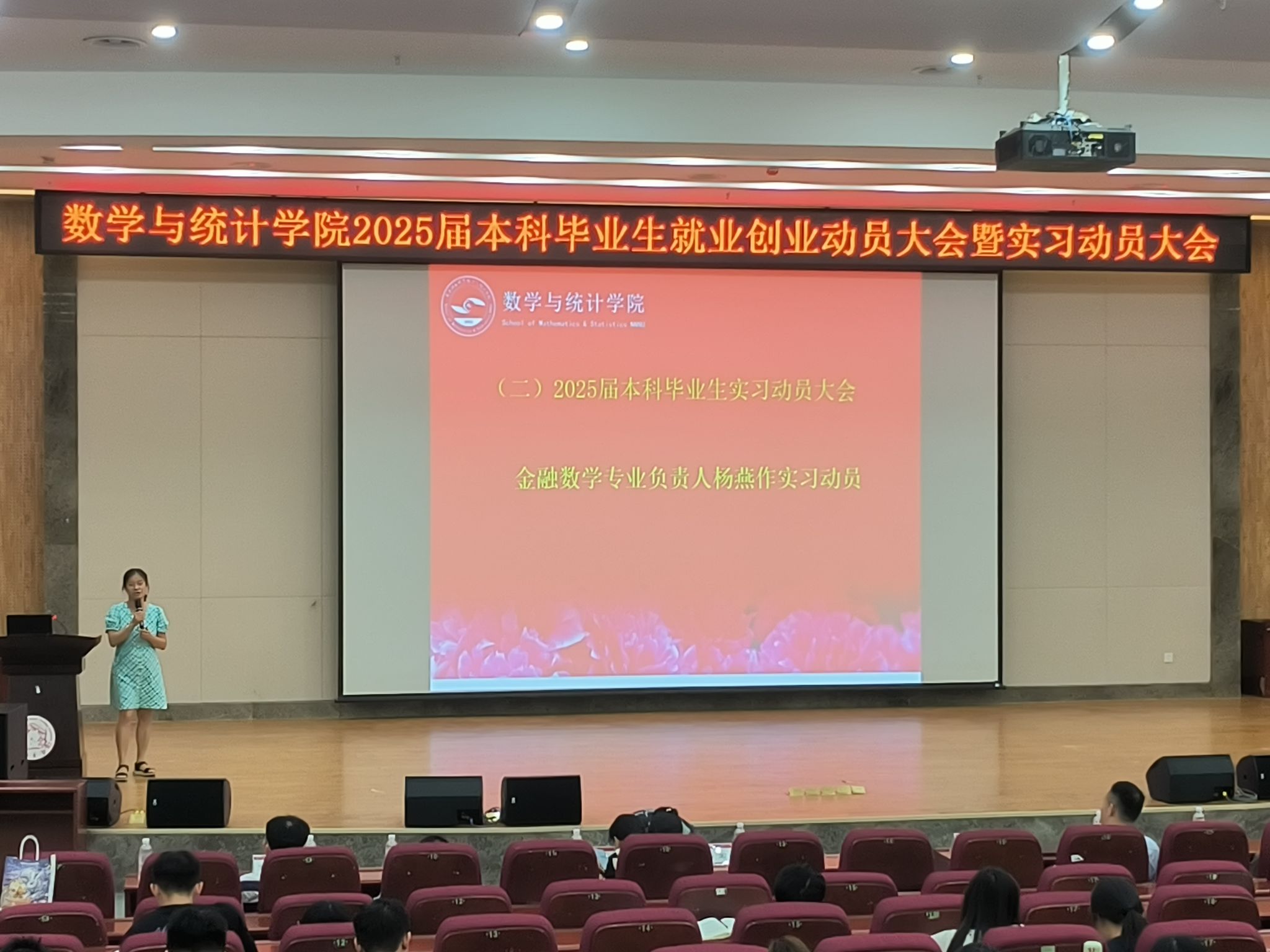 会上,数学与应用数学专业负责人杨立英老师、金融数学专业负责人杨燕老师分别就实习期间要求进行强调,实习是宝贵的“试错期”,是发现问题、改善自我的机会,为了解就业现状、毕业论文打牢基础,也是人生旅程的一次磨砺,更是通向就业的踏板。希望同学们遵纪守法,充分发扬吃苦耐劳的精神;要树立良好的形象,走近员工,成为良师益友。要注意个人习惯,坚守教育初心,投身教育实习,努力成为“四有”好老师。随后,辅导员何振飞老师就实习期间安全注意事项进行了要求。