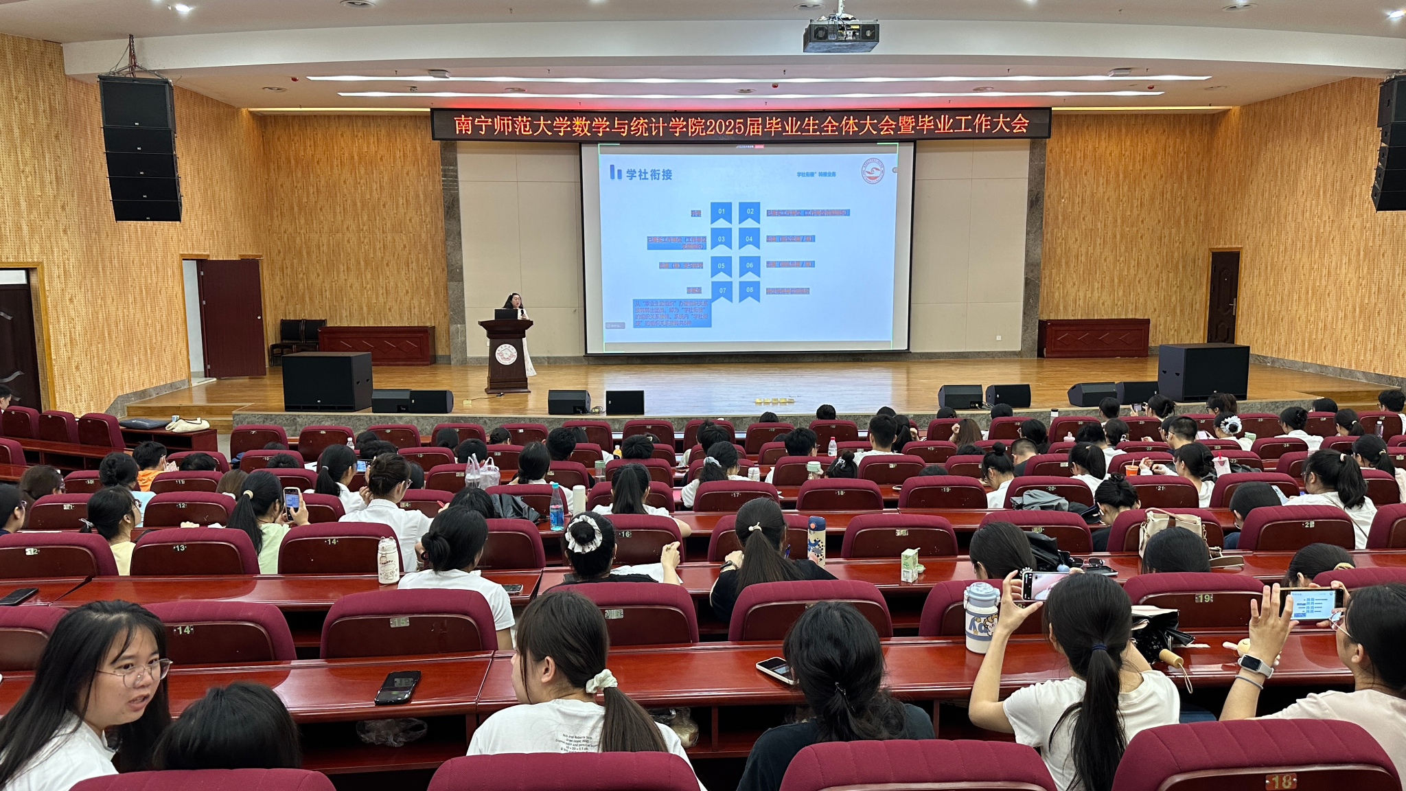 为引导公司毕业生安全、文明、有序完成毕业离校前各项工作,6月6日,william威廉中文官网在武鸣校区图书馆报告厅召开2025届本科毕业生工作大会,公司辅导员老师、在校毕业生参加此次大会,公司团委书记梁卡霖老师主持。
