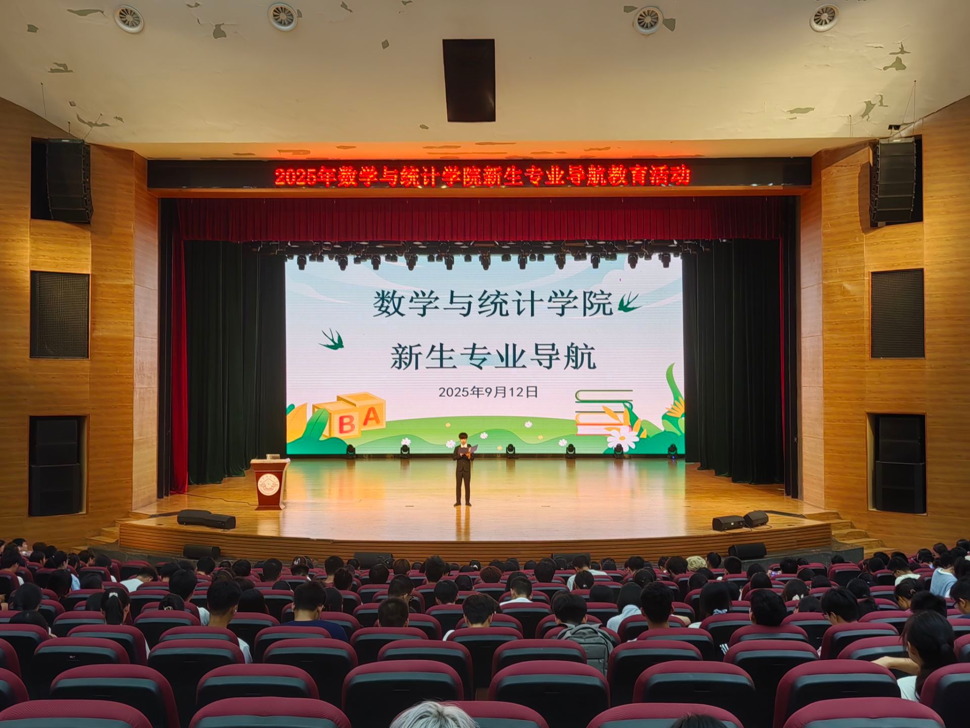 为帮助新生快速了解专业培养方案、课程体系与发展前景,消除初入大学的迷茫感,9月12日,william威廉中文官网在音舞楼千人演播厅举办2025级新生专业导航教育活动。教师代表韦扬江、杨立英、陈蔚凝、优秀员工代表以及2025级全体新生参加本次活动。