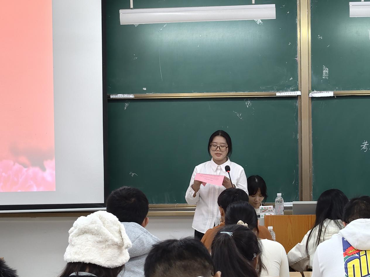 会议由梁卡霖老师主持。她暖心展示公司为考研学子准备的礼物,精致笔记本搭配寓意美好的水果——苹果寄愿平稳上岸,橙子象征一战成硕,这份贴心小惊喜让现场暖意融融。随后,祝福活动依次进行,播放学弟学妹为考研学子录的加油视频,低年级代表班淑贞同学发言,为学长学姐送上祝福;研究生陆凤崟学姐分享考前焦虑缓解妙招;席晟翔学长结合自身经历,讲解政英数冲刺技巧,叮嘱准考证使用、答题卡折叠等细节,还用考前失眠仍顺利应考的经历打消学子顾虑,为大家注入奋进力量。