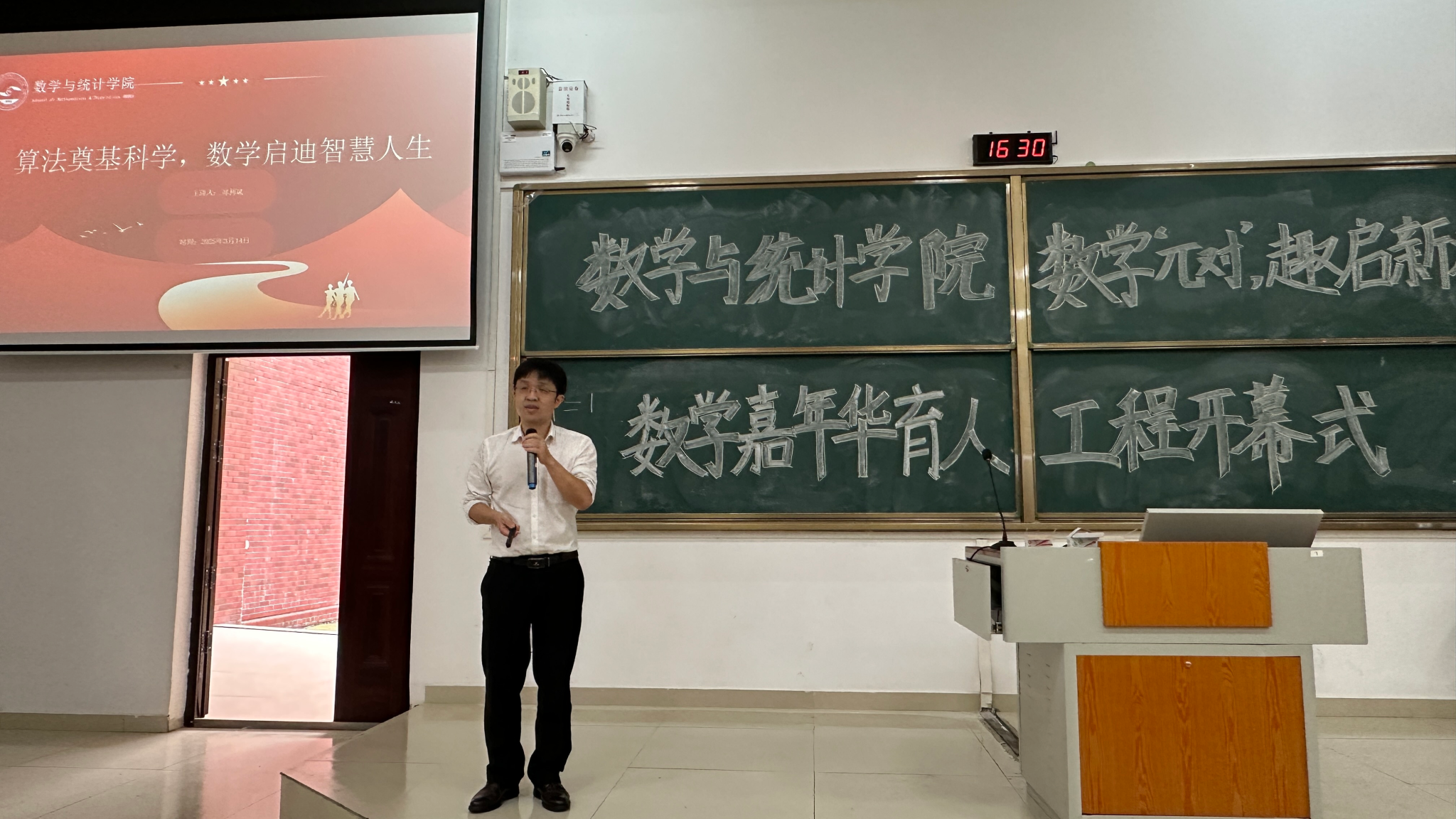 刘利斌教授以“算法奠基科学,数学启迪智慧人生”为主题开展讲座,他从圆周率的计算公式、什么是数学、几个数学建模与实际应用等方面指出了数学学科的重要性,讲解了生活中数学模型的实际应用,彰显了数学的独特魅力。
