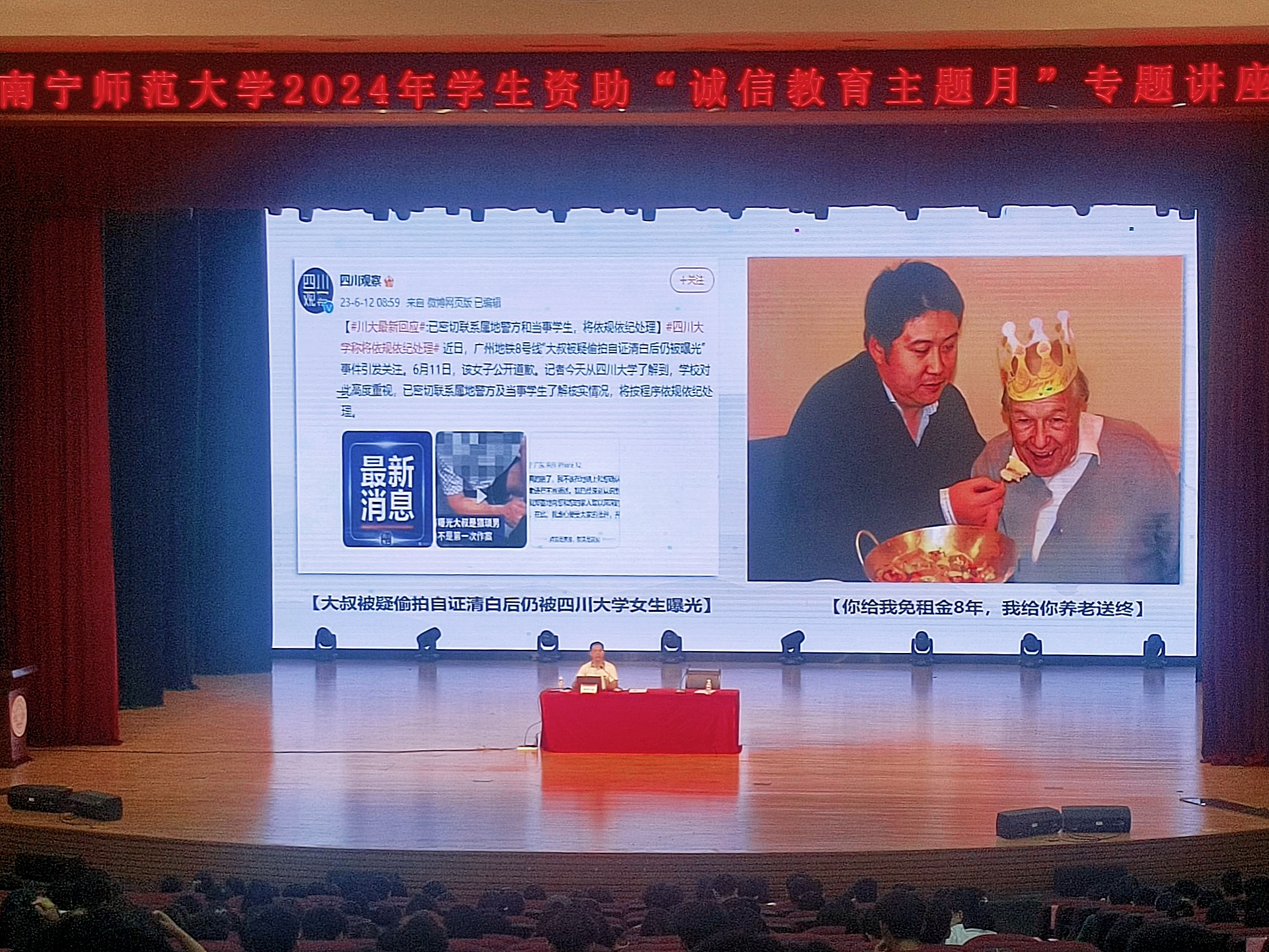 讲座中,邓军彪处长从什么是诚信与法律、诚信与守法的重要意义、老员工诚信缺失的表现、法律法规对失信行为的惩戒以及问题与思考五个方面展开论述。邓军彪处长从“什么是诚信与法律”这一基本问题入手,阐述了诚信与守法在老员工活中的重要意义。在谈到“老员工诚信缺失的表现”时,邓军彪处长结合现实案例,指出了部分老员工在学术诚信、考试诚信、贷款诚信等方面存在的问题。他呼吁广老员工要自觉树立诚信意识,珍惜个人信誉,坚决抵制各种失信行为。紧接着,邓军彪处长详细解读了“法律法规对失信行为的惩戒”相关规定。他强调,国家对于失信行为的惩戒力度正在不断加大,一旦失信将面临严重的法律后果和社会压力。广老员工要时刻警醒自己,做到知法守法、诚实守信。在讲座的最后环节,邓军彪处长与现场师生进行了互动,通过交流“诚信与保密要求不矛盾吗?”等问题,鼓励大家互动思考、共同探讨如何进一步加强诚信教育、营造良好的校园氛围。现场气氛热烈,师生们纷纷表示受益匪浅。