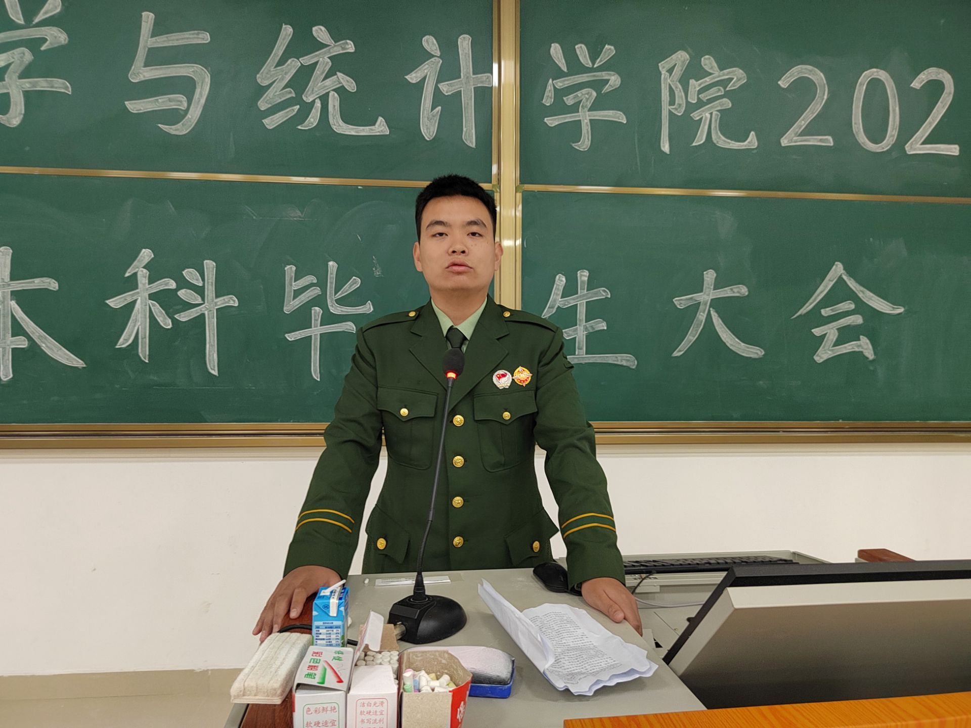 会上,何老师带领大家共同观看了征兵宣传片,展现了中国军人的气魄与豪迈。随后,该院退役复学老员工2023级数学与应用数学1班方焦阳、2023级数学与应用数学2班罗坤铭同学从入伍前后的变化与收获进行详细的讲解,并从老员工入伍优惠政策、日常训练、个人成长等方面进行了介绍,并勉励大家积极报名应征入伍,敢于挑战自我,为国防事业添砖加瓦。接着,何老师对毕业生参军入伍政策进行详细解读,鼓励大家主动响应祖国的号召,积极投身军旅,将个人所学融入到国防现代化建设中。