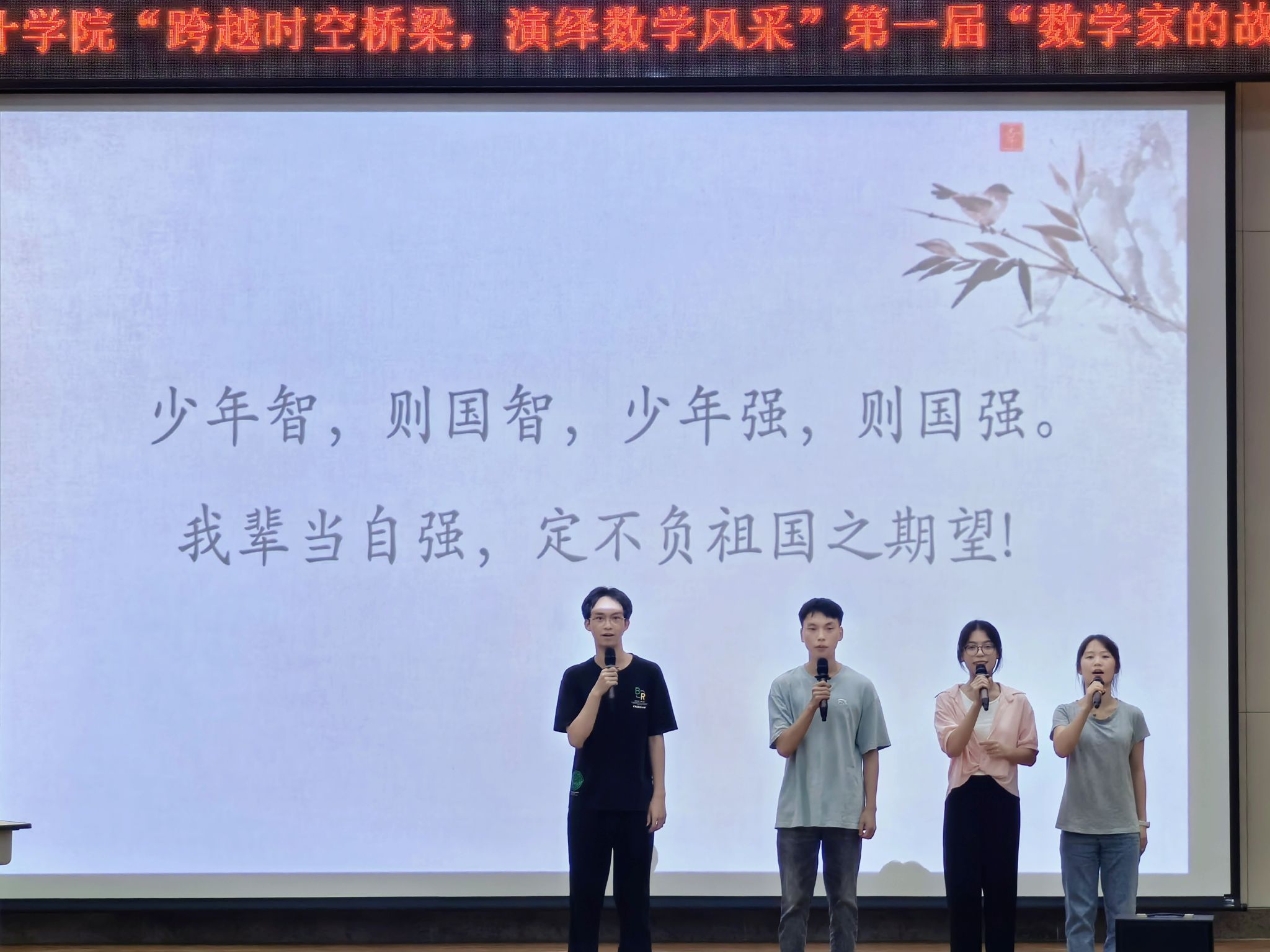 比赛过程中,选手们落落大方、自信满满,或深情讲述,或情景演绎,声情并茂地将数学家们的传奇人生和杰出贡献呈现在观众面前。从刘徽对数学的深入研究,到祖冲之对π分数近似值的精确演算,从毕达哥拉斯对勾股定理的发现,到欧几里得对几何原理的探索,选手们以独特的方式演绎了数学家的故事,让观众仿佛穿越时空,亲身感受他们的智慧与魅力。经过激烈的角逐,舞台剧《华罗庚的故事》脱颖而出,夺得桂冠。最后,何振飞老师对选手们的表现予以肯定,并希望大家能够充分挖掘数学家的思想和文化内涵,领悟数学思想,展现数学的独特魅力。