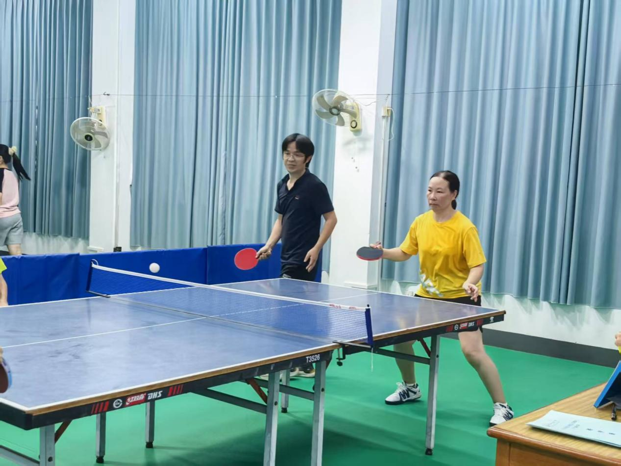 决赛对阵传统强队体育公司队,这场冠军争夺战更显激烈。作为赛事热门队伍,体育公司队选手技术全面,一开场便展现出强劲攻势。团体赛涵盖男单、女单、男双、女双、混双五个项目。决赛场上,双方攻防交织、比分紧咬,赛事悬念迭起。首两轮混双、男单对决中,两队你来我往、难分伯仲,最终战成1:1 平,比赛悬念推向高潮。关键的第三轮女双较量,我方组合开局陷入被动,以 0:2 落后的不利局面。危急时刻,参赛老师及时为场上队员分析战术、加油鼓劲;队员们备受鼓舞,调整状态连扳三局,成功实现逆转。