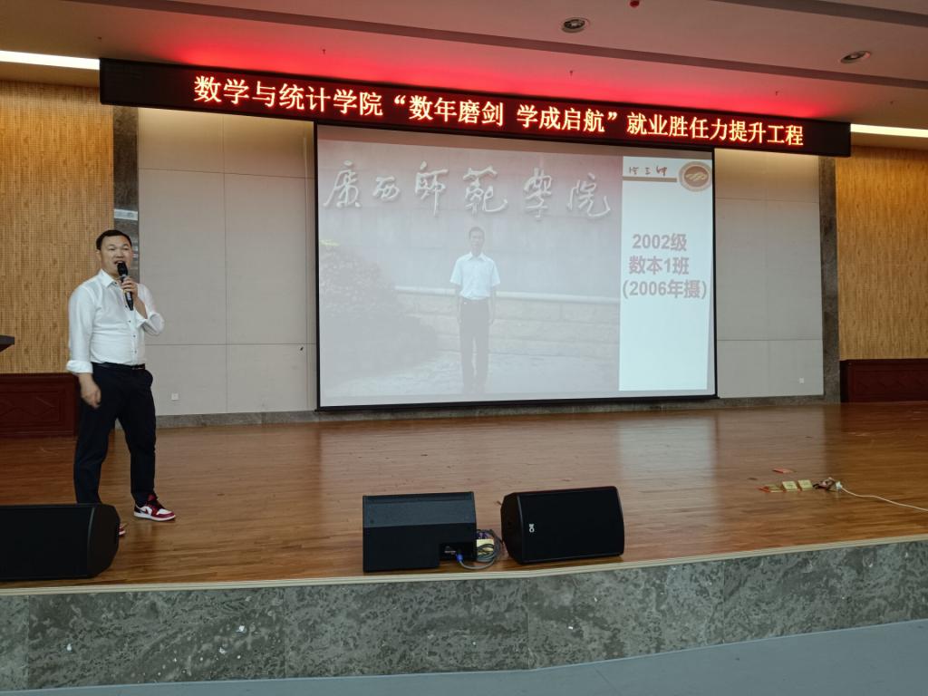 为做好公司2023届毕业生就业创业工作,更好地指导毕业生就业创业,营造公司浓厚的向学氛围,4月11日,南宁市第三中学高级教师汪朝宽在公司领导的邀请下,来到公司开展就业创业培训讲座。本次讲座由公司黄在堂副经理(主持公司行政工作)主持,2019—2021级数学与应用数学专业员工参加。