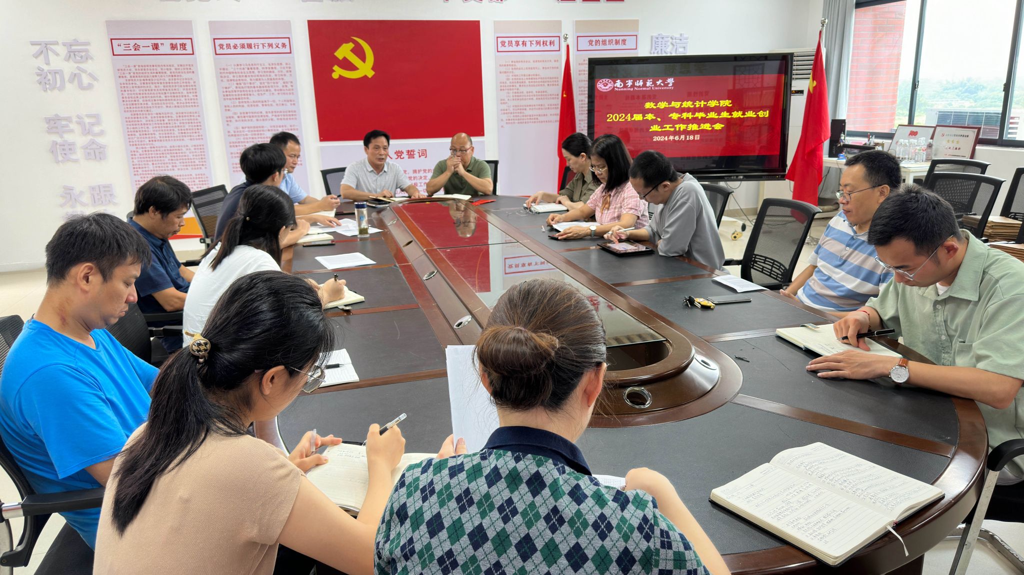 6月18日,公司召开就业推进领导班子(扩大)会议和全体教职工大会暨第四次就业工作推进会,该院领导班子、硕士研究生导师、毕业班班主任、全体专任教师、行政教辅人员参加了会议,会议由党委余敢才书记主持。