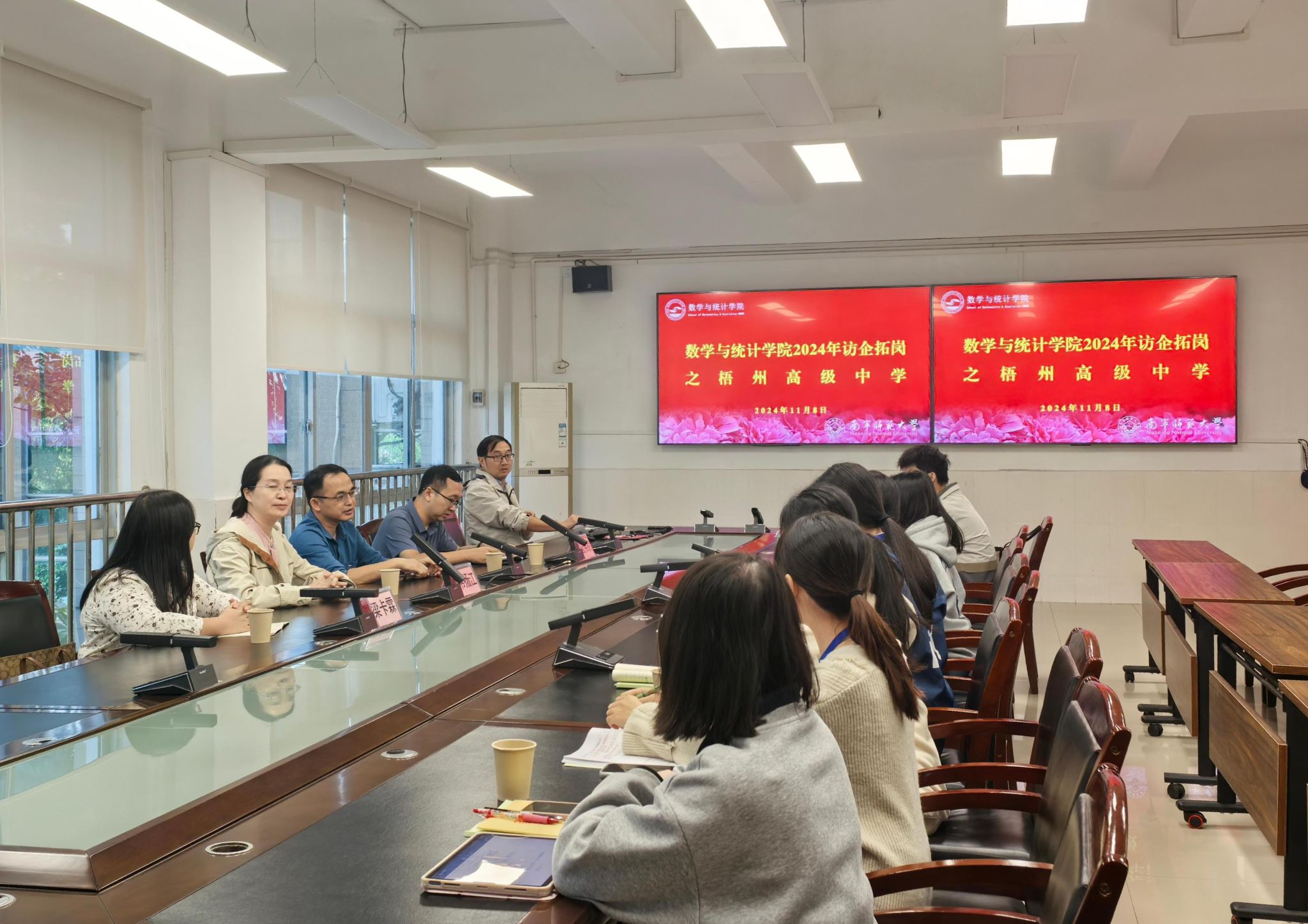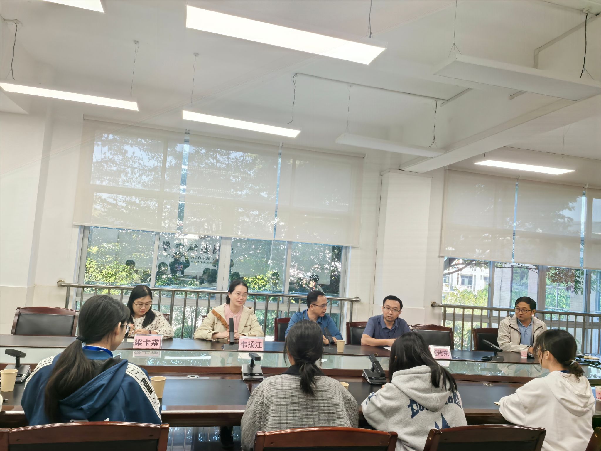 座谈会后,在梧州高级中学蓝副董事长的陪同下,韦扬江副经理、梁卡霖老师以及2025届毕业生一行首先参观了高二数学组教师办公室、实习生备课室和教学示范基地,并观摩了实习生的教学公开课。至此,本次梧州高中实习中期检查暨访企拓岗活动顺利完成。