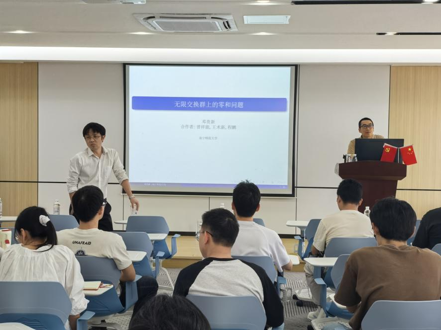 在此次报告中,邓贵新教授带领同学们回顾了零和理论的发展历程,并分享了他在无限交换群研究方面的独到见解。邓教授通过生动形象的讲解和具体实例,深入浅出地揭示了该领域的核心议题和最新进展。
