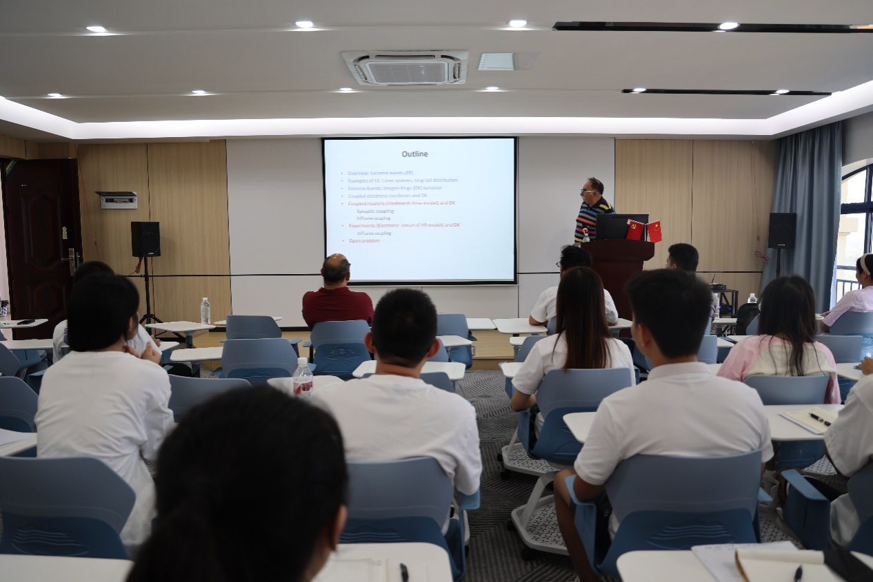 在报告中,Tomasz Kapitaniak教授概述了极端事件,从物理等多方面阐述 “龙王” 行为、耦合神经元与 “龙王” 扩散耦合相关模型。还提到动态系统状态变量时间演化中会有间歇性大振幅事件,参数临界值时该事件在系统中出现并持续。最后,Tomasz Kapitaniak教授以单个和耦合系统为例说明不稳定过程产生极端事件及表现形式、动力学和统计特性。