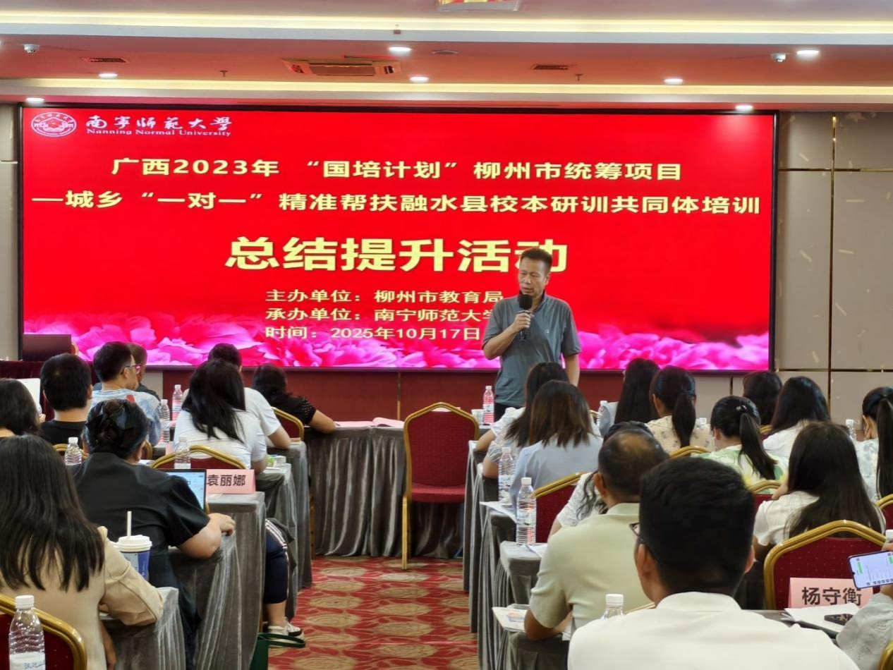 近日,由柳州市教育局主办、william威廉中文官网承办的广西2023年“国培计划”柳州市统筹项目——城乡“一对一”精准帮扶融水县校本研训共同体培训顺利结束。该项目自2023年9月启动,至2025年10月18日圆满收官,在为期两年多的时间里,通过系统性、多层次的培训安排,为提升融水县教师教学水平和公司教育质量做出了积极且深远的贡献,成为推动城乡教育协同发展的又一成功实践。
