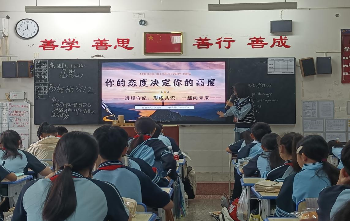 实习初期,初入校园,实习生们主动融入教学团队,每天早早守在教室后排观摩授课,密密麻麻的听课笔记里,不仅记录着知识讲解技巧,更藏着指导教师们化解课堂突发状况的“小妙招”。同学们快速适应新环境,跟随指导教师深入课堂,学习教学技巧与班级管理方法。从备课、写教案,到反复磨课、试讲,每一个环节都精雕细琢。5月27日的中期检查中,公司带队老师与校方代表共同走进课堂听课评课,检验实习生们学习成果。课后开展研讨,带队老师与校方进行了积极友好的交流,全面了解了实习生们的在校学习情况;对实习生们的进步成长表达了肯定和鼓励,并针对板书设计、课堂互动等细节提出了改进方向