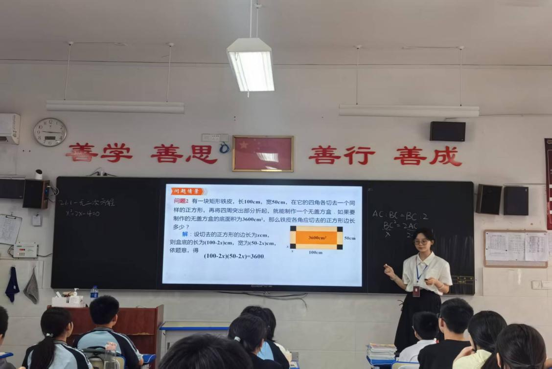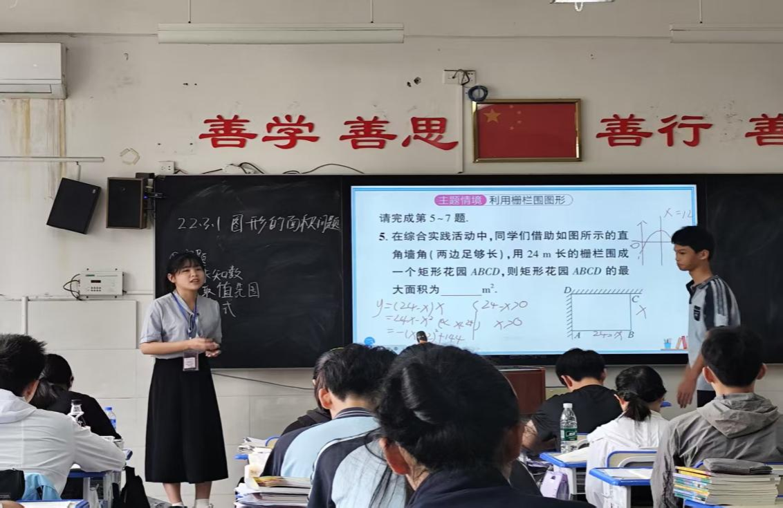 在新民中学,实习生们不仅站上讲台授课,还参与了数学文化知识辅导、课后服务等活动。通过与员工互动,他们学会因材施教,灵活调整教学策略;在处理班级突发情况中,提升了沟通与应急能力。