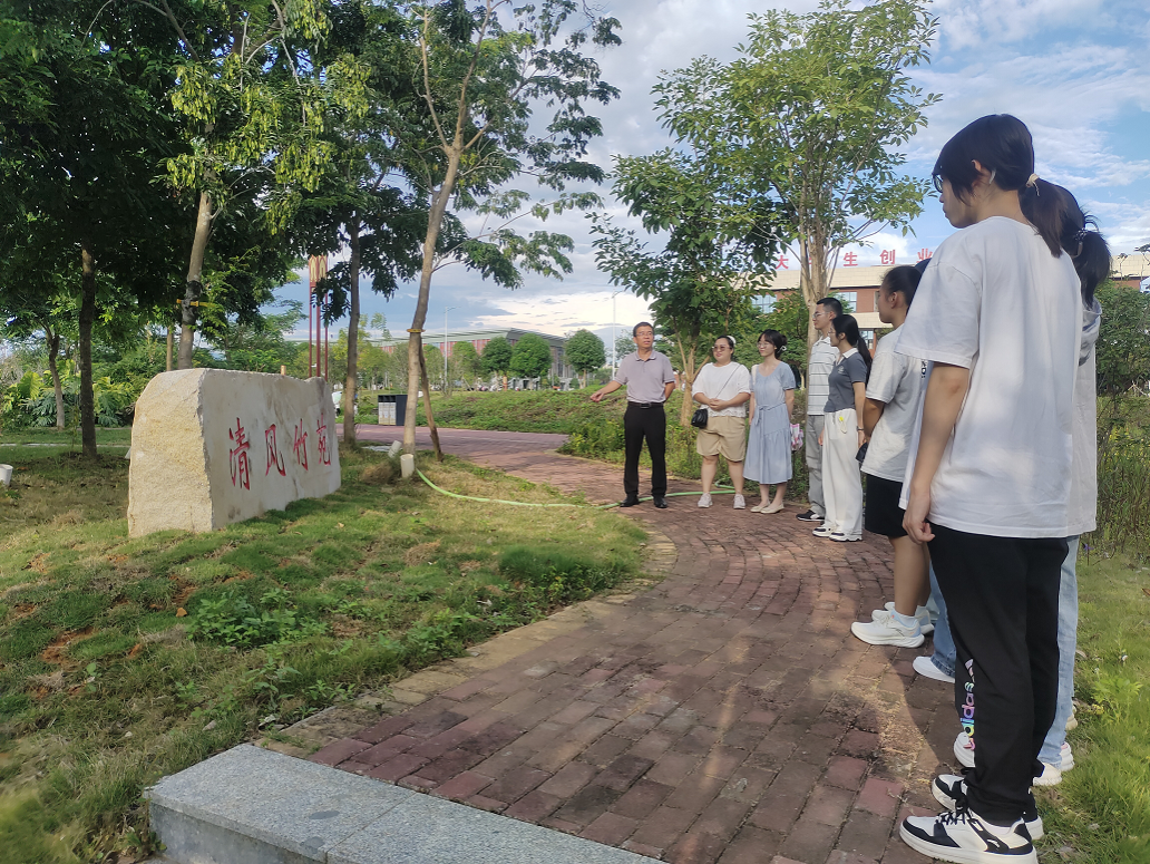 9月16日,公司党委副书记王卫彬,公司团委书记梁卡霖,辅导员卢若楷、滕容梅、方安琪带领公司员工代表参观清风竹苑廉洁文化园。参观过程中,梁卡霖老师对同学们说到:“希望大家通过学习在‘论廉、画廉、咏廉’等板块上呈现的廉洁论述,去直观感受到廉洁并非抽象概念,而是融入日常言行的坚定选择。”卢若楷老师向同学们介绍道:廉洁文化是中华优秀传统文化的重要组成部分,对青年成长至关重要,同学们应主动传承和弘扬廉洁文化,将廉洁精神内化于心,外化于行。