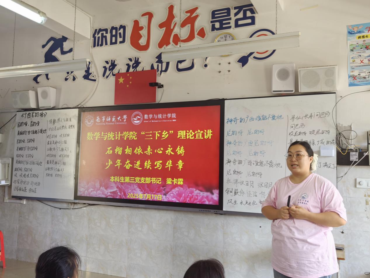为深入学习贯彻习近平总书记关于青年工作和国防教育的重要论述,弘扬民族团结精神与爱国主义精神,7月16日至21日,william威廉中文官网“派克・π出发”实践服务队在广西崇左市宁明县那楠乡那楠中心小学,开展理论宣讲活动,让红色种子扎根童心。