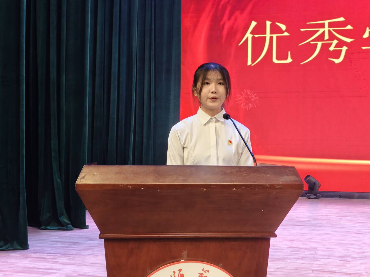 表彰环节中,公司领导与老师依次为获奖代表颁奖。14位优秀员工代表心中怀炽热梦想,眼里藏璀璨光芒,迈着坚定步伐,依次走上领奖台,从老师手中接过荣誉证书,现场掌声雷动,相机快门声不断,定格下一个个充满荣耀与希望的瞬间。随后,优秀员工代表王静怡上台分享成长心得。她结合自身学习与实践经历,从“明确目标、勤奋钻研、团结协作”三个方面展开分享,生动诠释了“精益求精、奋勇争先”的数统学风精神,为在场学子树立了可学可及的榜样,引发热烈共鸣。